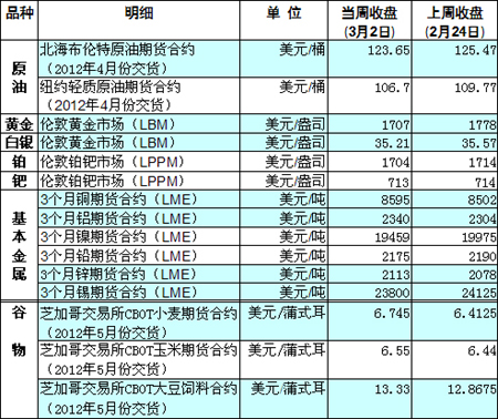 國際大宗商品期貨價格明細表[2012-03-05]