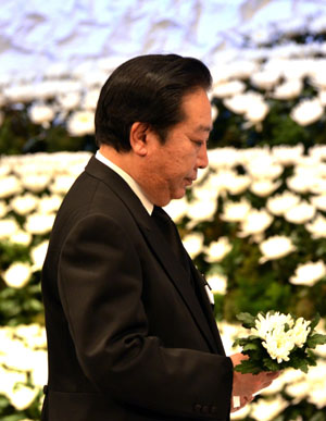 下圖:3月11日,日本首相野田佳彥參加地震海嘯死難者周年悼念儀式。新華社/美聯(lián)