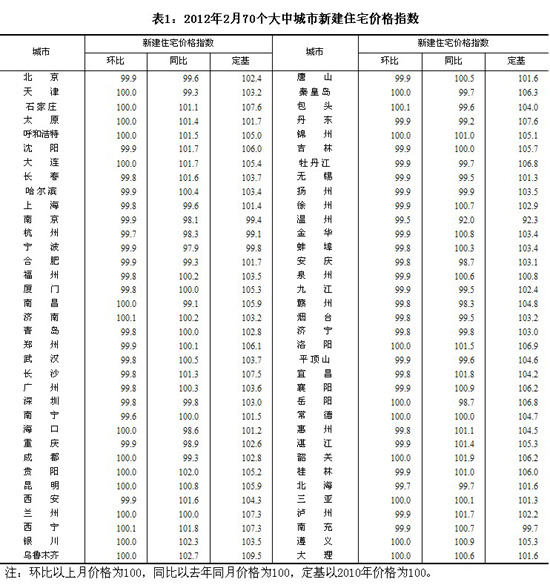 2、現(xiàn)行《住宅銷售價(jià)格統(tǒng)計(jì)調(diào)查方案》自2011年1月起開始實(shí)施,2011年10月70個(gè)大中城市全部報(bào)送了網(wǎng)簽數(shù)據(jù)。由于各個(gè)城市報(bào)送網(wǎng)簽數(shù)據(jù)的初始時(shí)間不同步,因此2012年10月前,部分城市的數(shù)據(jù)與以往歷史數(shù)據(jù)不完全可比。