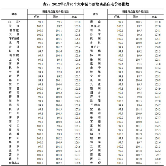 *本表所列北京市“新建商品住宅價(jià)格指數(shù)”與北京市有關(guān)部門發(fā)布的“新建普通住房?jī)r(jià)格”在統(tǒng)計(jì)口徑、統(tǒng)計(jì)標(biāo)準(zhǔn)等方面均有不同。