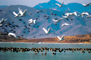 密云水庫(kù)成為大批水鳥的棲息地。 |