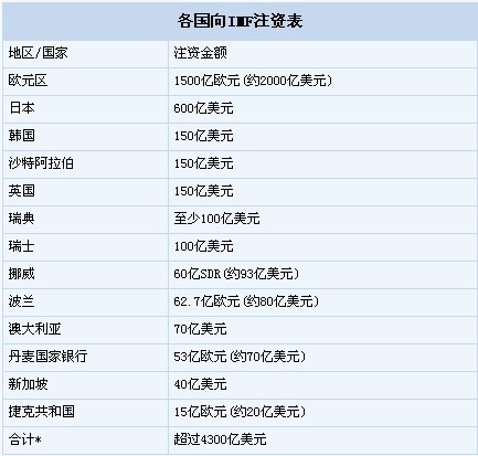 二十國集團(G20)和國際貨幣基金組織(IMF)的國際貨幣與金融委員會發(fā)表聯(lián)合聲明稱,G20承諾向IMF注資超過4300億(美元,下同),并特別注明這些國家包括金磚四國,惟聲明未披露中國具體的注資金額。 總裁拉加德在聲明中稱,感謝作出注資承諾的成員國,并特別感謝中國、俄羅斯、巴西、印度等國表示愿意加入注資的行列。特別值得一提的是,在IMF最早的一封聲明中,IMF透露中國、俄羅斯等國將承諾注資超過720億美元,但之后立即發(fā)布新聲明,將這一欄刪除。 二十國集團財長及央行行長當(dāng)日在IMF春季會議期間舉行會晤,會后宣布注資計劃。這是IMF近年來第二次增資,2009年,為應(yīng)對當(dāng)時的全球金融危機,各方一舉向IMF注資7500億美元。 聲明稱,與會各國做出堅定承諾,計劃在IMF2010年份額改革的基礎(chǔ)上,向IMF注資4300多億美元。這些資金供IMF全體成員國使用,而非某一特定地區(qū)的專項資金。 聲明強調(diào),這些資金將記入IMF普通基金賬戶,以臨時雙邊貸款的形式發(fā)放。一旦需要動用資金,須經(jīng)IMF執(zhí)董會批準(zhǔn),并要附加條件,制定詳細的風(fēng)險規(guī)避、責(zé)任分擔(dān)等計劃。 在歐債危機進入第三年后,IMF反復(fù)強調(diào)需進一步增資,以獲得足夠資源防范可能發(fā)生的全球金融危機。早前IMF總裁拉加德表示,未來幾年全球潛在融資需求約為1萬億美元,IMF最多需要增資5000億美元。 截至4月20日,IMF獲得的注資承諾超過3600億美元。其中歐元區(qū)承諾注資2000億美元,日本承諾注資600億美元,英國、韓國承諾注資150億美元,澳大利亞、丹麥、瑞典、挪威、瑞士、新加坡、波蘭等國也做出注資承諾。 但目前身為IMF最大出資方的美國態(tài)度消極,明確表示不會為IMF注資。分析人士指2012系美國大選年,在經(jīng)濟未見明顯起色之際,奧巴馬政府如果承諾注資,料將引發(fā)保守派選民的強烈反彈,況且奧巴馬也根本無法說服共和黨把守的眾院批準(zhǔn)注資計劃。