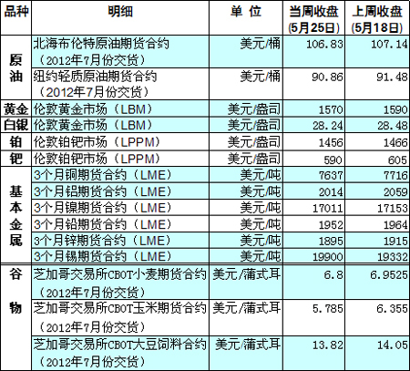 國(guó)際大宗商品期貨價(jià)格明細(xì)表[2012-05-28]
