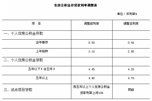 附表:住房公積金存貸款利率調(diào)整表