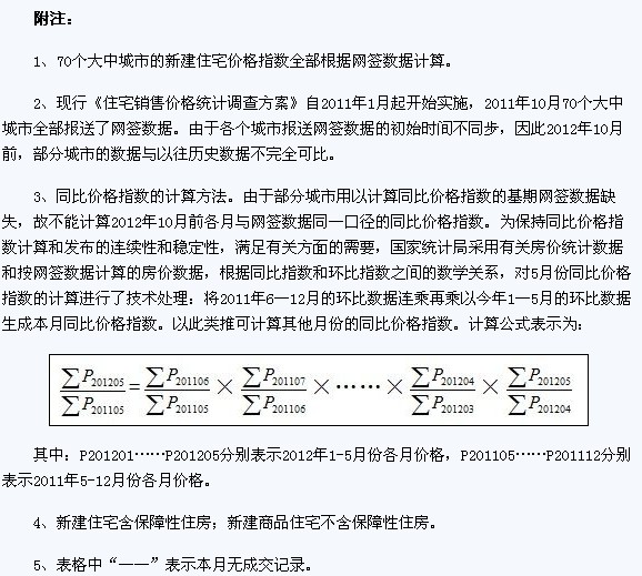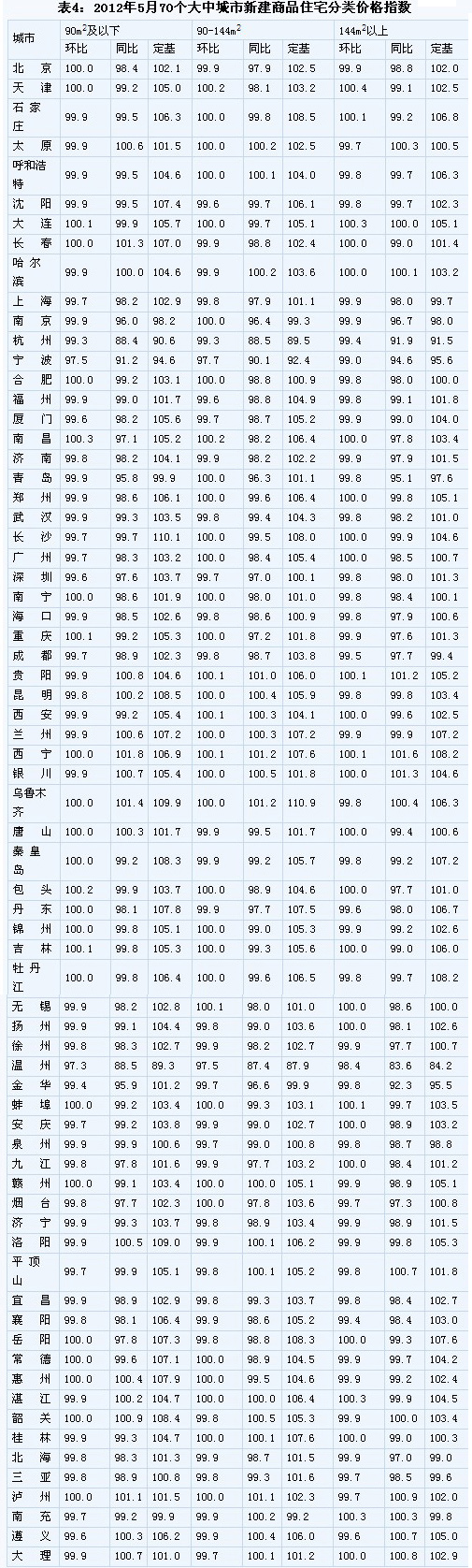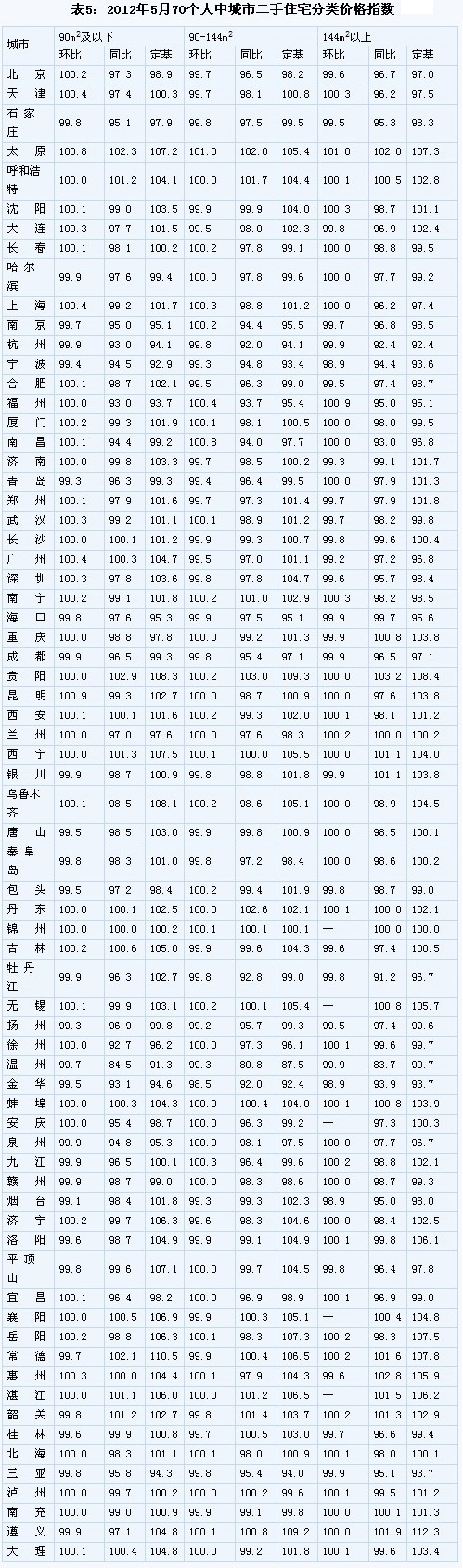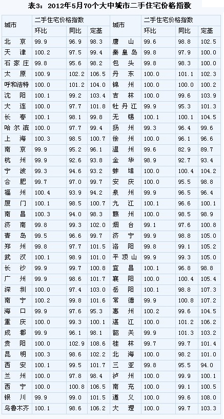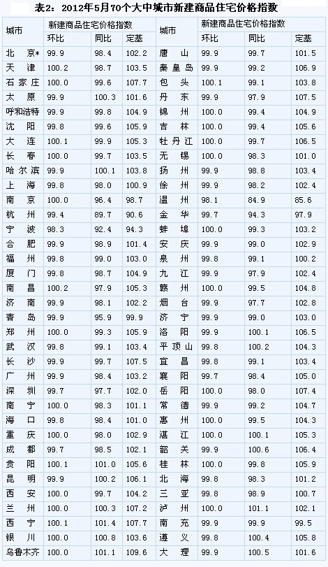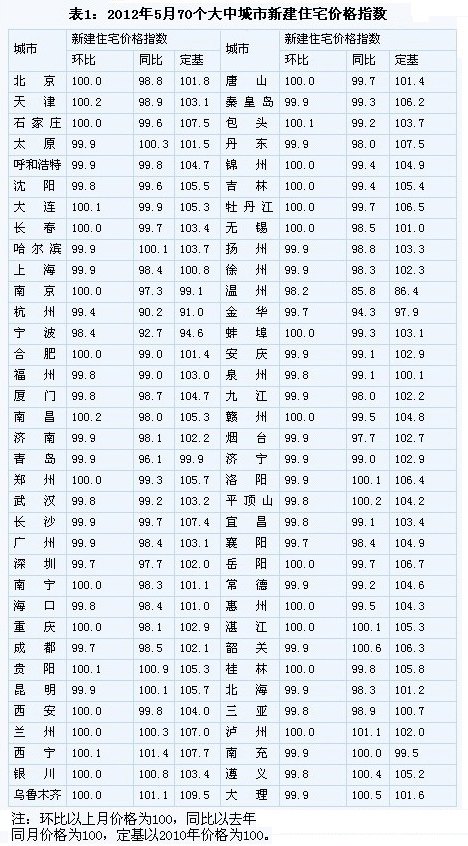 2012年5月份70個(gè)大中城市住宅銷售價(jià)格變動(dòng)情況