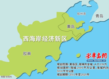 去年1月,國務院批準《山東半島藍色經(jīng)濟區(qū)發(fā)展規(guī)劃》,山東半島藍色經(jīng)濟區(qū)建設上升為國家戰(zhàn)略。繼而青島市委、市政府把西海岸經(jīng)濟新區(qū)規(guī)劃建設納入藍色經(jīng)濟區(qū)戰(zhàn)略的核心內(nèi)容。今年1月31日,青島西海岸經(jīng)濟新區(qū)黨工委、管委會正式成立,新區(qū)開發(fā)建設全面啟動。3月,青島市發(fā)布《青島西海岸經(jīng)濟新區(qū)發(fā)展規(guī)劃》。規(guī)劃顯示,新區(qū)范圍為青島開發(fā)區(qū)、膠南市全域,陸域面積2096平方公里,海域面積約5000平方公里,常住人口139萬,規(guī)劃期限2011年至2020年。