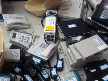 泰國警方現(xiàn)場繳獲的用于詐騙的工具。圖片由江蘇警方提供 |