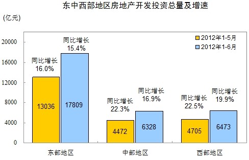 1-6月份,東部地區(qū)房地產(chǎn)開(kāi)發(fā)投資17809億元,同比增長(zhǎng)15.4%,增速比1-5月份回落0.6個(gè)百分點(diǎn);中部地區(qū)房地產(chǎn)開(kāi)發(fā)投資6328億元,增長(zhǎng)16.9%,增速回落5.4個(gè)百分點(diǎn);西部地區(qū)房地產(chǎn)開(kāi)發(fā)投資6473億元,增長(zhǎng)19.9%,增速回落2.6個(gè)百分點(diǎn)。