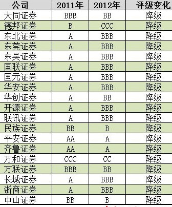 東北證券2011年凈利則虧損高達(dá)1.5億元,等級(jí)從A級(jí)降至BBB級(jí)。