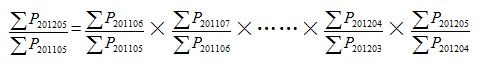 3、同比價格指數(shù)的計(jì)算方法。由于部分城市用以計(jì)算同比價格指數(shù)的基期網(wǎng)簽數(shù)據(jù)缺失,故不能計(jì)算2012年10月前各月與網(wǎng)簽數(shù)據(jù)同一口徑的同比價格指數(shù)。為保持同比價格指數(shù)計(jì)算和發(fā)布的連續(xù)性和穩(wěn)定性,滿足有關(guān)方面的需要,國家統(tǒng)計(jì)局采用有關(guān)房價統(tǒng)計(jì)數(shù)據(jù)和按網(wǎng)簽數(shù)據(jù)計(jì)算的房價數(shù)據(jù),根據(jù)同比指數(shù)和環(huán)比指數(shù)之間的數(shù)學(xué)關(guān)系,對5月份同比價格指數(shù)的計(jì)算進(jìn)行了技術(shù)處理:將2011年6—12月的環(huán)比數(shù)據(jù)連乘再乘以今年1—5月的環(huán)比數(shù)據(jù)生成本月同比價格指數(shù)。以此類推可計(jì)算其他月份的同比價格指數(shù)。計(jì)算公式表示為: