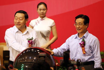 | 浙江省委書記趙洪祝、國家電網(wǎng)公司總經(jīng)理劉振亞共同啟動(dòng)溪洛渡左岸-浙江金華±800千伏特高壓直流輸電工程。 |