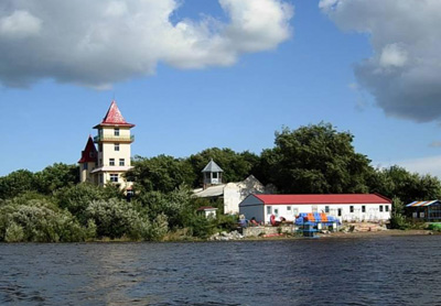 乘船在黑龍江中看主航道中國一側鶴崗蘿北名山島的景色。