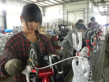廣宗縣一家童車公司忙碌的生產(chǎn)線。記者 曹國廠