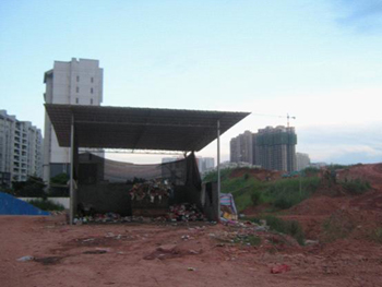 翡翠園小區(qū)是南寧市核心主干道民族大道沿路上一個較早建起的樓盤。小區(qū)業(yè)主反映,從2004年開始沿大門口進(jìn)入小區(qū),必經(jīng)之路就是一個露天的垃圾站,小區(qū)生活垃圾就這樣曝曬在生活區(qū)中。今年4月中旬,大門口這片露天垃圾中轉(zhuǎn)站轉(zhuǎn)移到了小區(qū)二期。