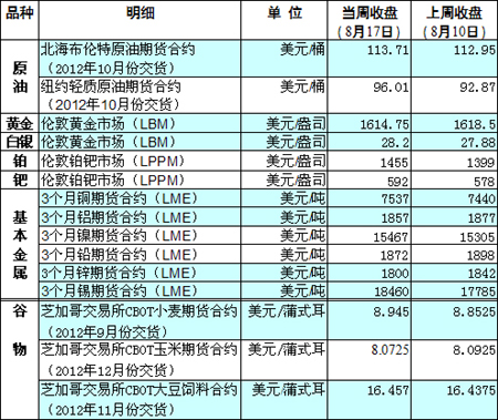 國(guó)際大宗商品期貨價(jià)格明細(xì)表[2012-08-20]