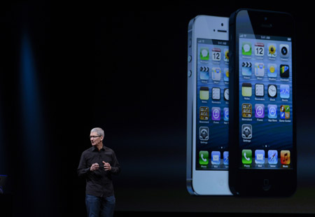 9月12日,在美國舊金山舉行的發(fā)布會(huì)上,蘋果公司首席執(zhí)行官蒂姆·庫克介紹新一代手機(jī)iPhone 5的特性。當(dāng)天,美國蘋果公司發(fā)布新一代智能手機(jī)iPhone 5。