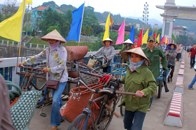 從河口口岸入境的越南商販。
