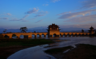 龍橋位于建水城西3公里的瀘江與塌沖河上,因兩河蜿蜒如龍,故而得名,俗稱“十七孔橋”,是一座三閣十七孔大石拱橋,是云南省規(guī)模最大、藝術(shù)價值最高的一座多孔連拱橋,已列入中國造橋史冊。1965年我國著名橋梁專家茅以升前來考察,將其列為全國大型古橋之一,遂被定為云南省重點文物保護單位。