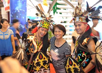 9月25日,在廣西南寧國際會展中心,參觀者在和印度尼西亞演員合影。 當(dāng)日,第九屆中國-東盟博覽會迎來公眾開放日,數(shù)萬參觀者前往觀展。記者