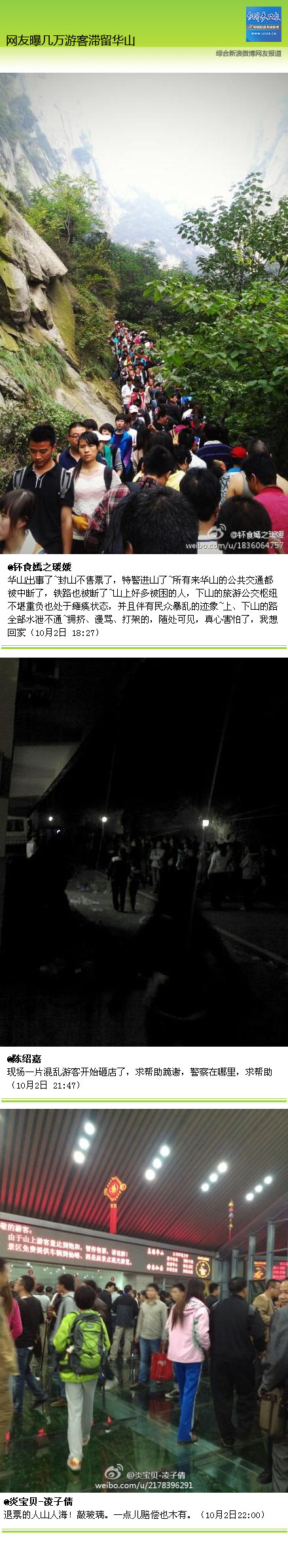 昨晚,有網(wǎng)友在微博爆料:今日幾萬游客擠爆華山,管理陷于癱瘓。有成千上萬游客夜困山頂下不來,游客要求退票,與管理方發(fā)生沖突,場面混亂,警察已出動。