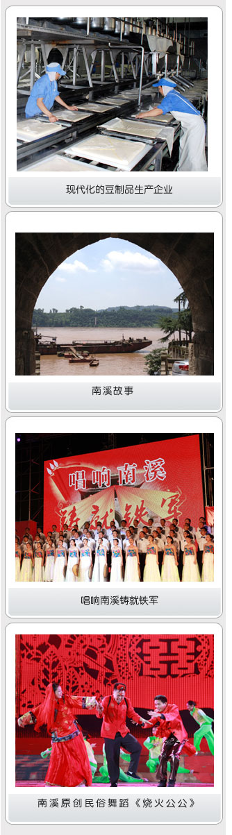 南溪豆腐干發(fā)源于三國時,發(fā)展于清朝光緒年間,歷經(jīng)千百年錘煉,已成為傳統(tǒng)東方美食的一朵奇葩。如今,依靠現(xiàn)代科技與傳統(tǒng)工藝的完美結(jié)合,這朵奇葩再綻異彩。 2007年,南溪豆腐干制作工藝被列入四川省首批非物質(zhì)文化遺產(chǎn)名錄;2008年,南溪生產(chǎn)出“世界最大的豆腐干”,創(chuàng)世界吉尼斯紀錄;2009年獲國家工商總局頒發(fā)的原產(chǎn)地保護產(chǎn)品“證明商標”;2010年,南溪舉辦“世界上最大豆腐干招待會”,再創(chuàng)吉尼斯紀錄;2011年,南溪豆腐干總產(chǎn)值接近19個億,銷量已躋身全國行業(yè)前三位,大批知名豆腐干產(chǎn)品暢銷國內(nèi)外。[詳細] | |