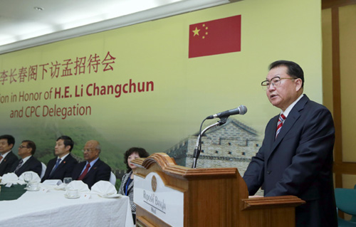 10月20日,中共中央政治局常委李長春在達(dá)卡出席孟加拉國各界友好人士招待會并發(fā)表講話。