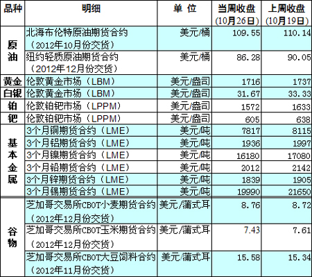 國(guó)際大宗商品期貨價(jià)格明細(xì)表[2012-10-29]