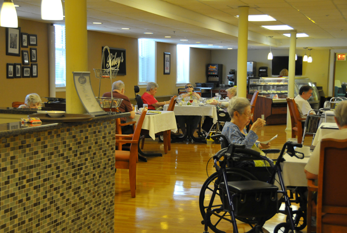芝加哥市諾伍德養(yǎng)老院餐廳內老人在就餐。 記者 張保平/攝 |