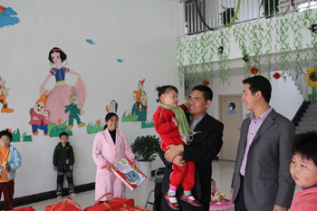 2012年11月3日,寒流驟至,室外天氣寒冷,但盱眙縣兒童福利院里卻暖意融融。為了讓生活在這里的孤殘兒童過得更加健康、幸福,邵建波、陳穎力、劉其軍一行,特地抽空來看望這里的孤殘兒童,為他們送去了電子琴、復(fù)讀機、牛奶等學(xué)習(xí)生活用品,讓他們感受到濃濃的愛意。