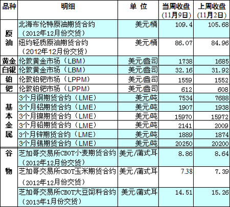 國(guó)際大宗商品期貨價(jià)格明細(xì)表[2012-11-12]