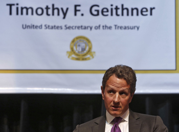 2008年全球金融危機(jī)爆發(fā)時(shí),蓋特納正擔(dān)任紐約聯(lián)邦儲備銀行主席。從那時(shí)起,直至奧巴馬就任總統(tǒng)后出任財(cái)長,蓋特納一直處于應(yīng)對金融危機(jī)的“第一線”,并成為奧巴馬經(jīng)濟(jì)刺激政策的主要執(zhí)行者。但正因如此,在金融救助計(jì)劃出現(xiàn)紕漏,經(jīng)濟(jì)復(fù)蘇形勢嚴(yán)峻,特別是失業(yè)率屢創(chuàng)新高的背景下,蓋特納總是充當(dāng)奧巴馬的“人肉盾牌”,替總統(tǒng)先生挨罵。