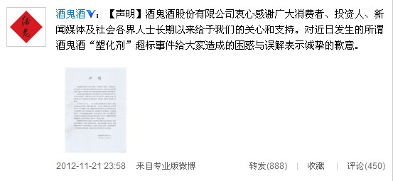 以下為酒鬼酒公司聲明全文: