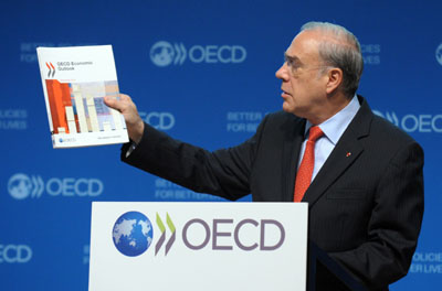 總部位于巴黎的經(jīng)濟合作與發(fā)展組織(簡稱經(jīng)合組織)27日發(fā)布新版“經(jīng)濟展望報告”。經(jīng)合組織秘書長安赫爾·古里亞當日在發(fā)布會上表示,全球經(jīng)濟明年將出現(xiàn)顯著下滑,而歐債危機“當前仍是世界經(jīng)濟最大威脅”。古里亞指出,盡管各國已采取應對措施,但一些國家的債務永久化問題有可能引發(fā)連鎖事件,將全球經(jīng)濟拖入衰退之中。經(jīng)合組織在報告中下調(diào)了全球經(jīng)濟增長預期,預計今年全球經(jīng)濟僅增長2.9%,明年增幅為3.4%。此外,經(jīng)合組織還預期,美國今年經(jīng)濟增速由此前預計的2.6%降至2.2%,2013年增速將降至2.0%。