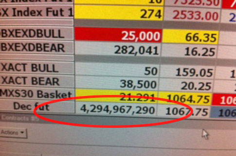 北京時(shí)間2012年11月29日晚間消息,據(jù)《瑞典商務(wù)日?qǐng)?bào)》報(bào)道,周三瑞典證交所出現(xiàn)了一份創(chuàng)紀(jì)錄的烏龍買單,該單購(gòu)買近43億份瑞典最重要股指OMX30的12月期貨。這一買單的理論價(jià)值高達(dá)460萬億瑞典克朗,約合431萬億人民幣。