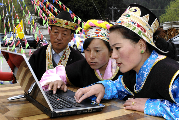 西藏林芝縣唐地村村民通過互聯(lián)網(wǎng)瀏覽新聞。
