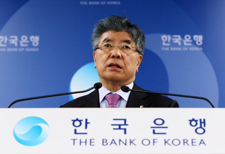 12月13日,韓國(guó)央行行長(zhǎng)金仲秀在新聞發(fā)布會(huì)上發(fā)言。