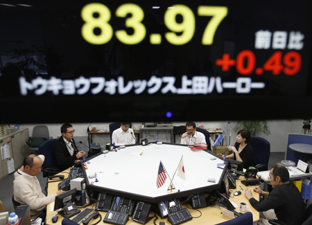 因市場預期重新上臺執(zhí)政的日本自由民主黨將促使日本央行采取更為激進的寬松貨幣政策,17日,東京外匯市場上日元對美元的匯價跌至1年半以來最低水平,一度降到84.48日元比1美元。