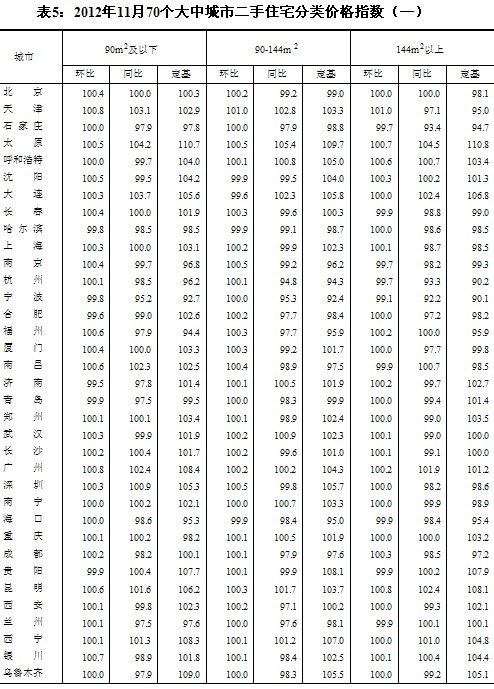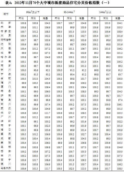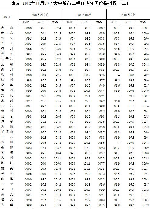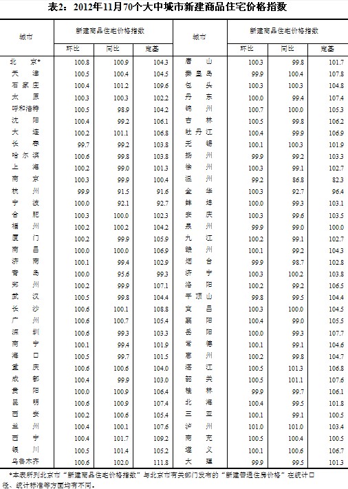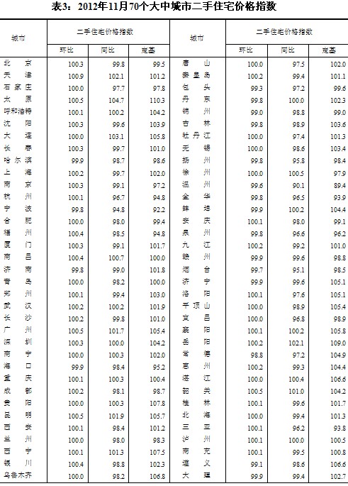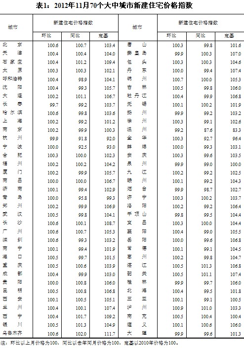 2012年11月份70個大中城市住宅銷售價格變動情況