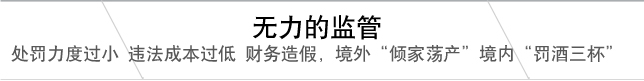 境內(nèi)"罰酒三杯" 上海交通大學(xué)高級金融學(xué)院副院長朱寧認(rèn)為,加強監(jiān)管不能僅僅停留在道義上的譴責(zé),關(guān)鍵是要追究責(zé)任。“在美國,安然因造假一日之內(nèi)破產(chǎn)倒閉;在香港,保薦機構(gòu)兆豐資本因未盡責(zé)被撤銷保薦牌照,并被罰款4200萬港元;而在A股市場,綠大地造假,各大責(zé)任主體逃之夭夭,股票依舊堂而皇之地掛牌交易! |
