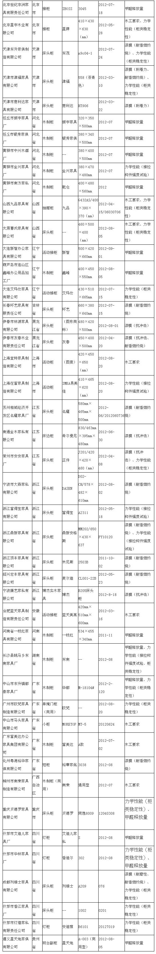 中國經(jīng)濟網(wǎng)記者了解到,甲醛釋放量不合格的產(chǎn)品有,北京世紀京洲家具有限責(zé)任公司一款I(lǐng)BOSS推柜,任丘市振宇家具廠一款振宇牌木制柜、任丘市銀秀家俱廠一款銀秀木制柜、黃驊市中興木器廠一款木制柜,黃驊市南方家私廠一款乾倉牌木制柜,大連新智辦公家具有限公司一款新智牌活動推柜,葫蘆島市連山區(qū)鑫峰辦公用品加工廠一款鑫峰牌木制柜,河南省一枝紅家具有限公司一款一枝紅牌木制柜,長沙縣跳馬鄉(xiāng)東南家具廠一款東南牌木制柜,中山市東升鎮(zhèn)都泰家具廠一款華都牌木制柜,重慶貝德羅家具有限公司一款貝德羅牌床頭柜,什邡市艾迪兒家具廠一款艾迪兒家私牌燈柜,什邡市華林家具廠一款香迪爾燈柜,遵義星天地家俱有限公司一款星天地牌班臺副柜。另外,佛山市順德區(qū)樂從鎮(zhèn)星華家具實業(yè)有限公司在抽查中拒檢。