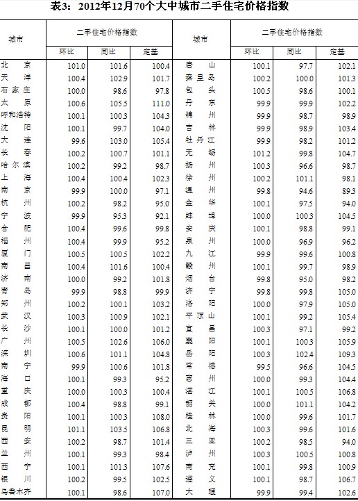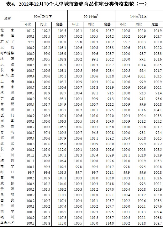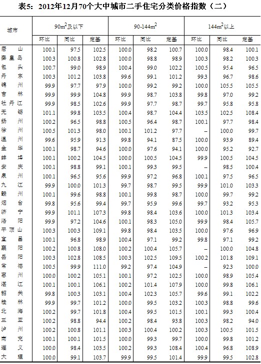 (二)與上年同月相比,70個(gè)大中城市中,價(jià)格下降的城市有42個(gè),持平的城市有3個(gè),上漲的城市有25個(gè)。12月份,同比價(jià)格上漲的城市中,漲幅均未超過(guò)5.5%,漲幅比11月份回落的城市有1個(gè)。
