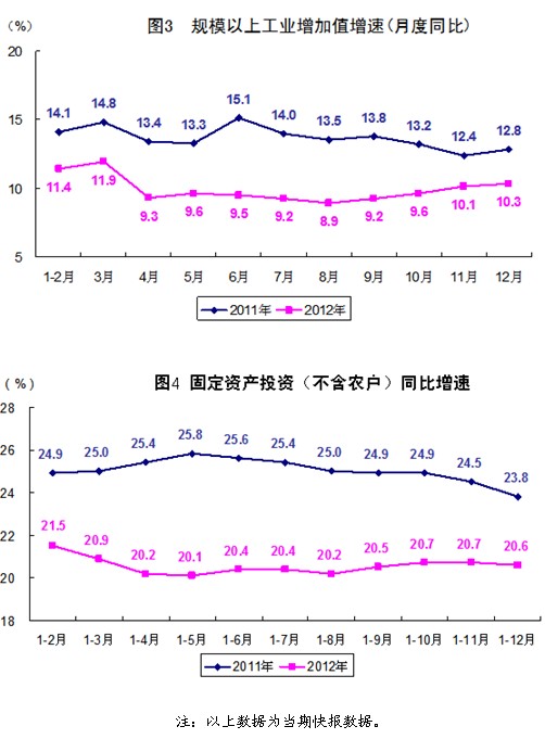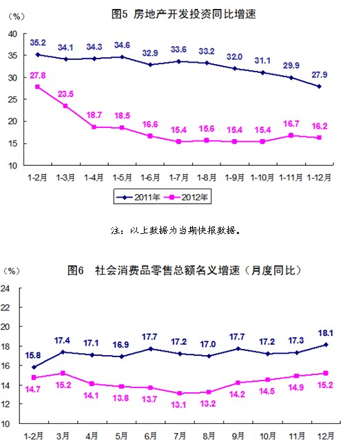 (5)固定資產(chǎn)投資(不含農戶)和房地產(chǎn)開發(fā)投資增速與上年比較,均按照2011年同口徑年報數(shù)進行比較。