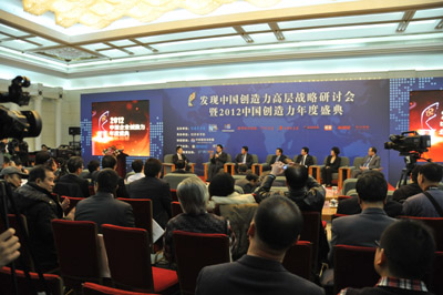 19日,“發(fā)現(xiàn)中國創(chuàng)造力高層戰(zhàn)略研討會暨2012中國創(chuàng)造力年度盛典”在北京人民大會堂舉行。本版攝影 郝光洲