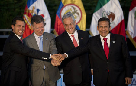 當(dāng)日,太平洋聯(lián)盟四國(guó)總統(tǒng)在智利首都圣地亞哥宣布,將于今年3月31日前開(kāi)放成員國(guó)間90%產(chǎn)品的關(guān)稅。