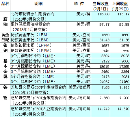 國(guó)際大宗商品期貨價(jià)格明細(xì)表[2013-02-04]