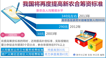 衛(wèi)生部部長(zhǎng)陳竺在21日召開的全國(guó)基層衛(wèi)生與新農(nóng)合工作會(huì)議上說,2013年新農(nóng)合人均籌資水平提高到340元左右,參合率保持在95%以上,政策范圍內(nèi)住院報(bào)銷比例達(dá)到75%,實(shí)際補(bǔ)償比力爭(zhēng)提高5個(gè)百分點(diǎn),全國(guó)平均達(dá)到60%左右,縣鄉(xiāng)兩級(jí)實(shí)際住院補(bǔ)償比分別達(dá)到60%和75%等標(biāo)準(zhǔn)。此外,今年我國(guó)還將加快商業(yè)保險(xiǎn)機(jī)構(gòu)參與新農(nóng)合經(jīng)辦服務(wù),開展利用人均15元左右的新農(nóng)合基金購買大病保險(xiǎn)試點(diǎn)。
