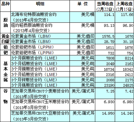 國(guó)際大宗商品期貨價(jià)格明細(xì)表[2013-02-25]