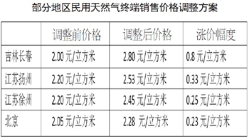 據(jù)悉,2月20日,江蘇揚州召開民用管道天然氣聽證會,擬對市區(qū)民用氣價格上調(diào)0.33元/立方米,調(diào)整后民用氣到戶價為2.53元/立方米。蘇州目前也正在核算天然氣銷售成本,計劃3月中旬召開價格調(diào)整聽證會,漲價幅度預(yù)計會在30%以下。