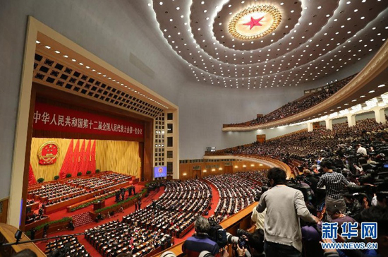 3月5日,第十二屆全國人民代表大會第一次會議在北京人民大會堂開幕。 新華社記者 丁林 攝