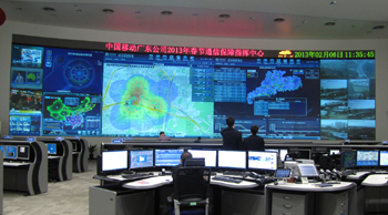 IMAX”模式,屏幕長21米高5米,信息量大,呈現(xiàn)立體;二是可實時呈現(xiàn)熱點區(qū)域業(yè)務(wù)、人流、網(wǎng)絡(luò)和業(yè)務(wù)質(zhì)量分布;三是可實時分析并呈現(xiàn)微博、微信、飛信等熱點業(yè)務(wù)使用情況;四是可每5分鐘自動刷新數(shù)據(jù),確保及時性;五是有效運用信令、話單、撥測等多種采集手段,信息挖掘更全面。實現(xiàn)精確統(tǒng)計移動互聯(lián)網(wǎng)流量,分析用戶關(guān)注的重點業(yè)務(wù)。